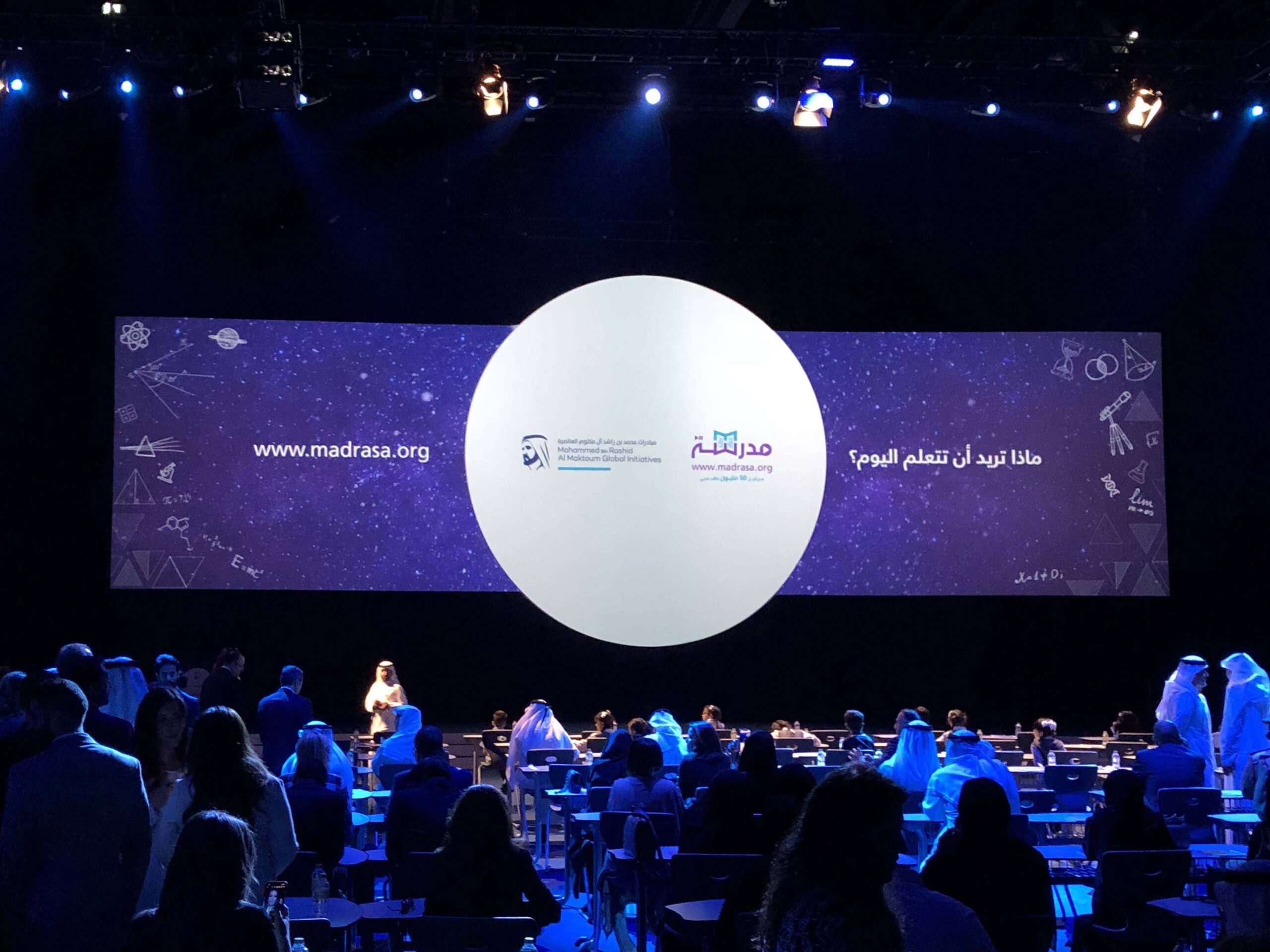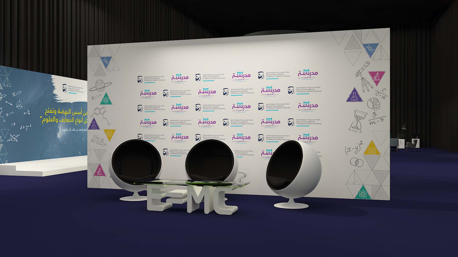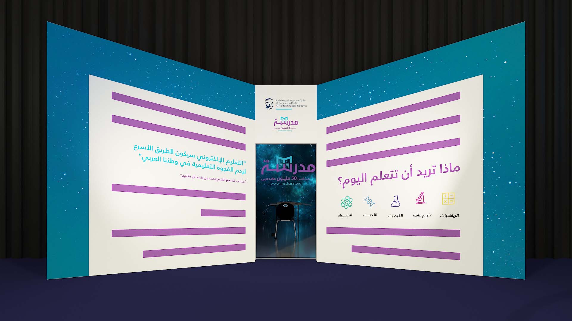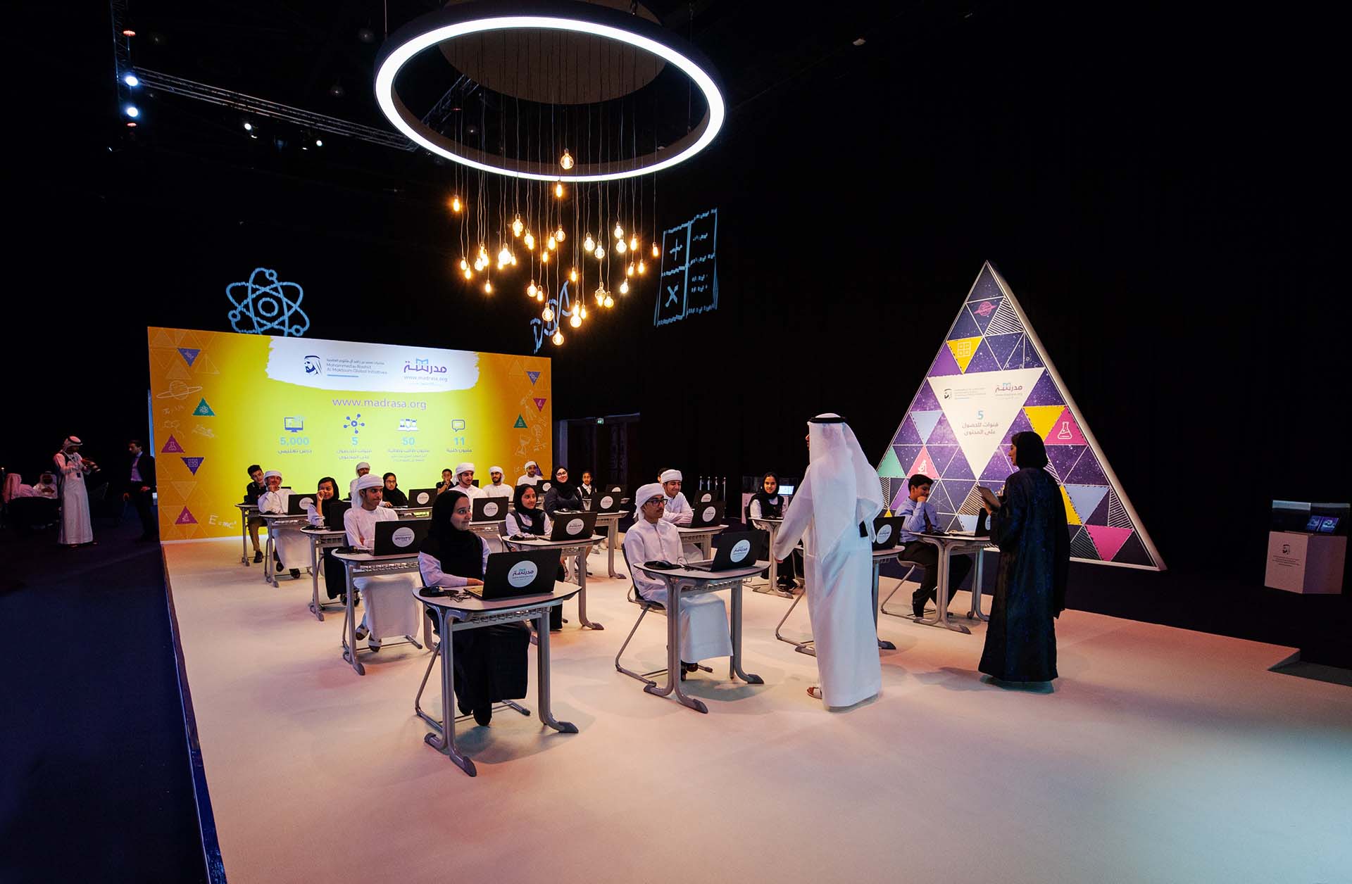 The design of this event built upon the existing school theme, marking the launch of the second phase of the successful translation initiative. Scenographic elements were carefully selected to enhance the experience and encourage audience participation. The event commenced with a trigger from His Highness, who inaugurated both the event and the online platform from an immersive environment projected onto the main screen.