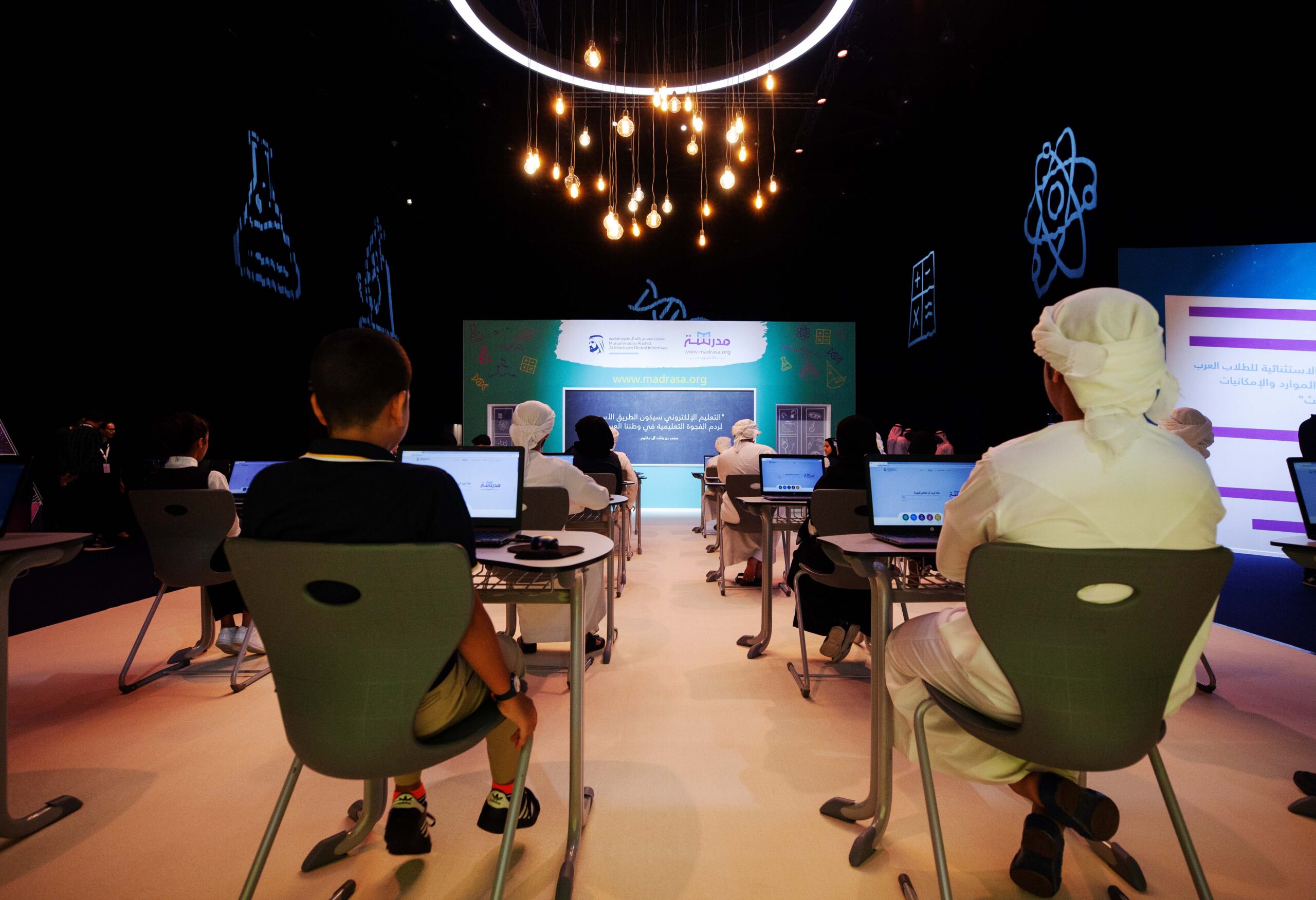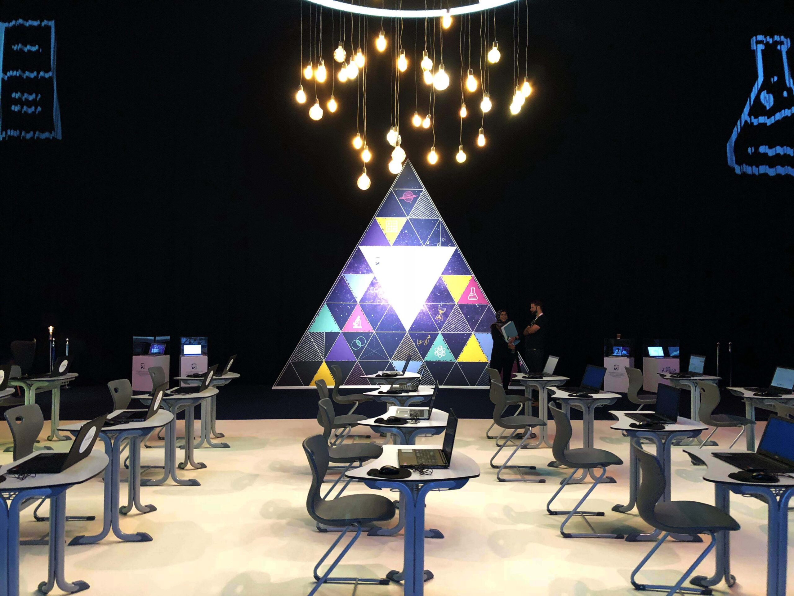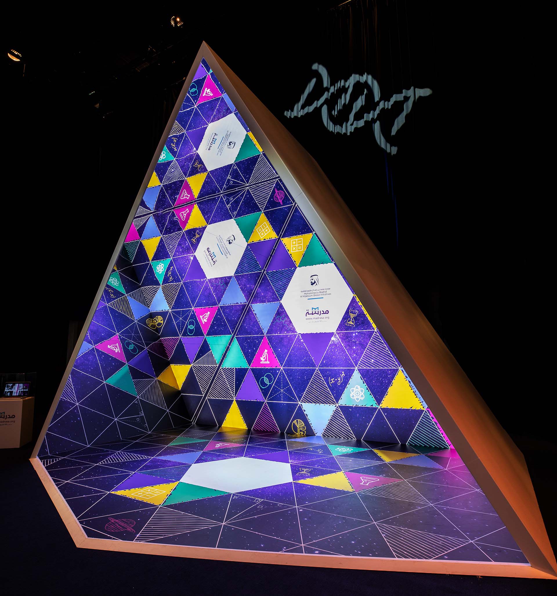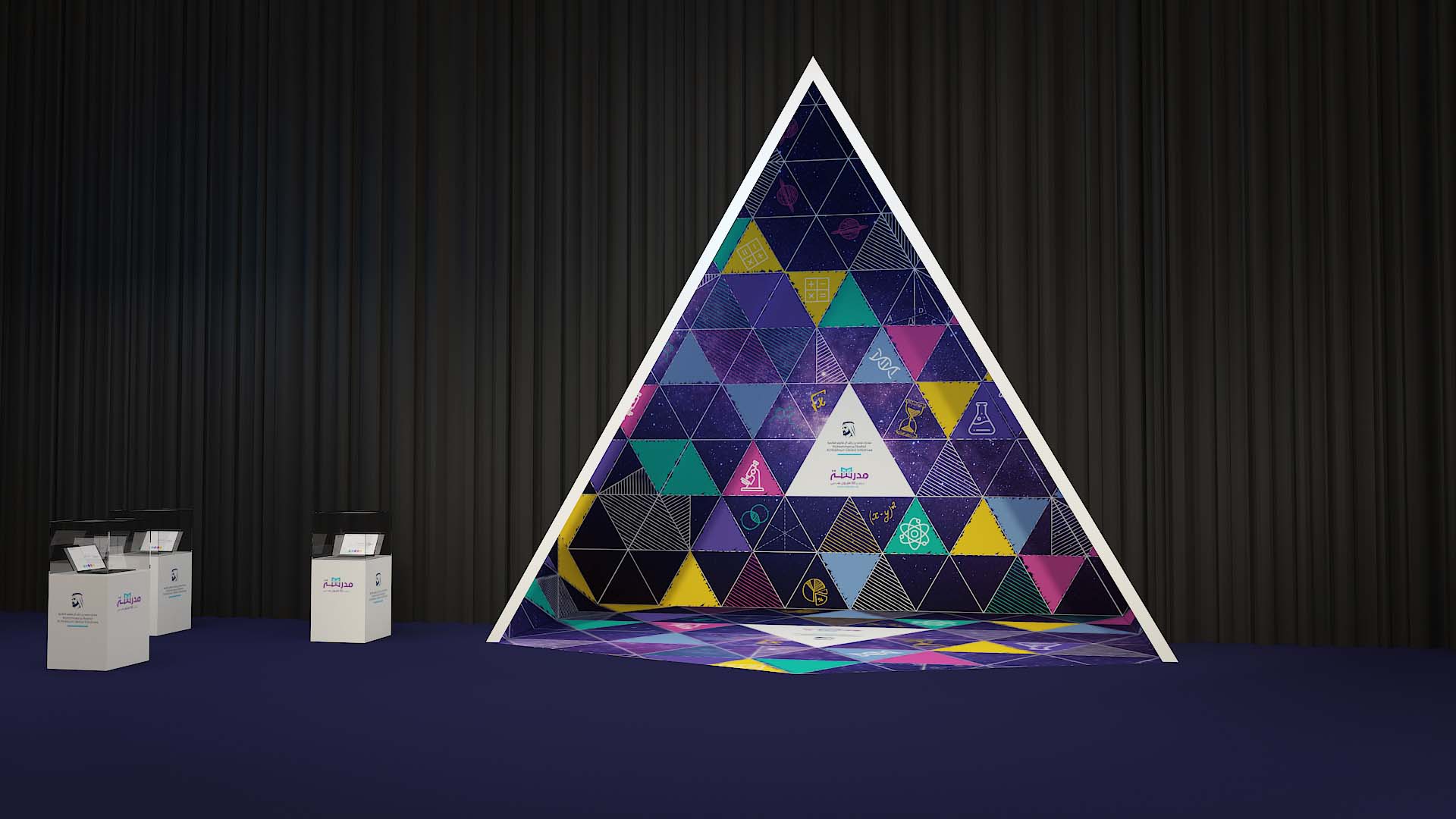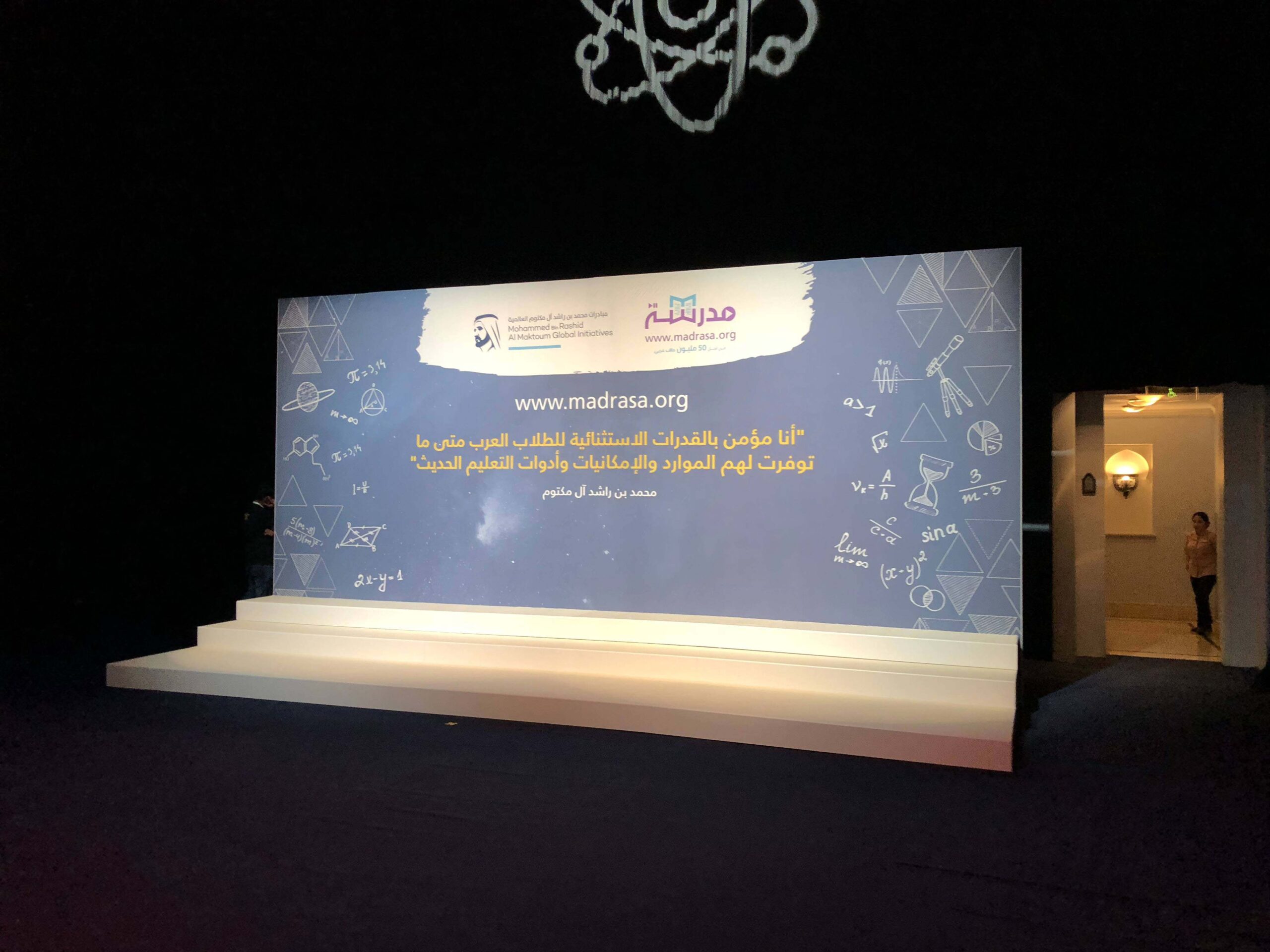 The design of this event built upon the existing school theme, marking the launch of the second phase of the successful translation initiative. Scenographic elements were carefully selected to enhance the experience and encourage audience participation. The event commenced with a trigger from His Highness, who inaugurated both the event and the online platform from an immersive environment projected onto the main screen.